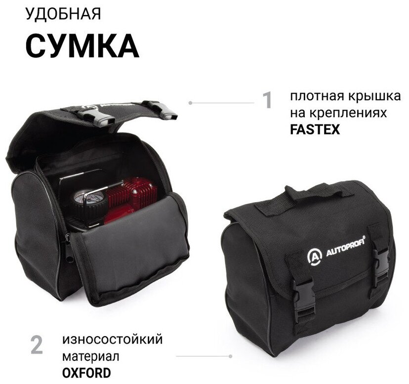 Компрессор AUTOPROFI 12v/14A, 150W, 10Атм 35л./мин., питание от прикур. или АКБ, 4 переходника в сумке AK-35