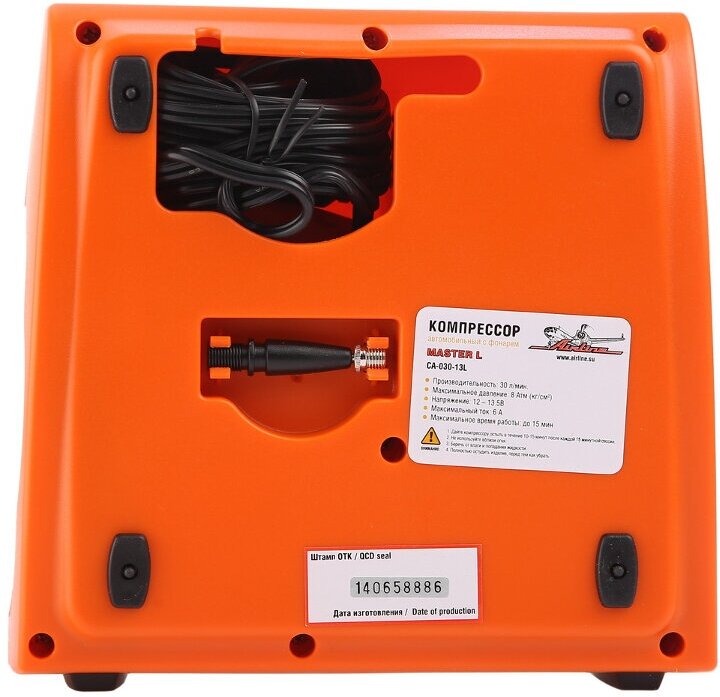 AIRLINE CA03013L Компрессор с фонарем 8Атм 30л/мин 6А шланг 0,7 м кабель 3 м 12В сумка AIRLINE MASTER L CA-030-13L