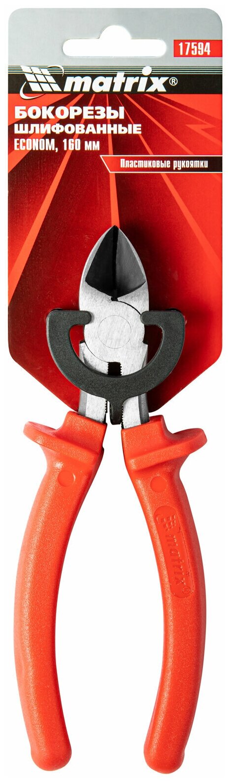 Бокорезы Econom, 160 мм, шлифованные, пластмассовые рукоятки, MATRIX 17594