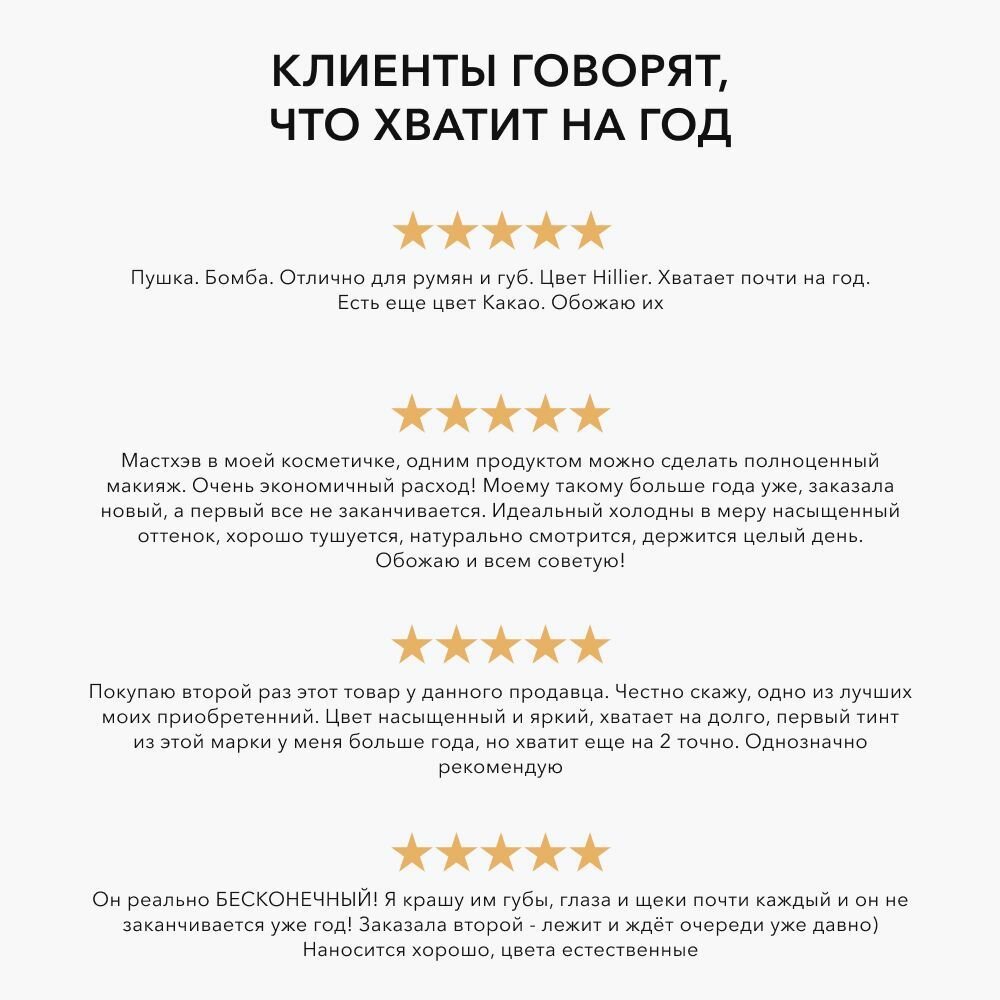 | Отзыв: | Использую как кремовую подложку под тени и тинт на губы. Безумно понравился. Идеально можно растушевать и выстроить форму, не скатывается в течение дня, очень понравился. Свои деньги как 2 в 1 отрабатывает на ура, а расход просто мизерный. |