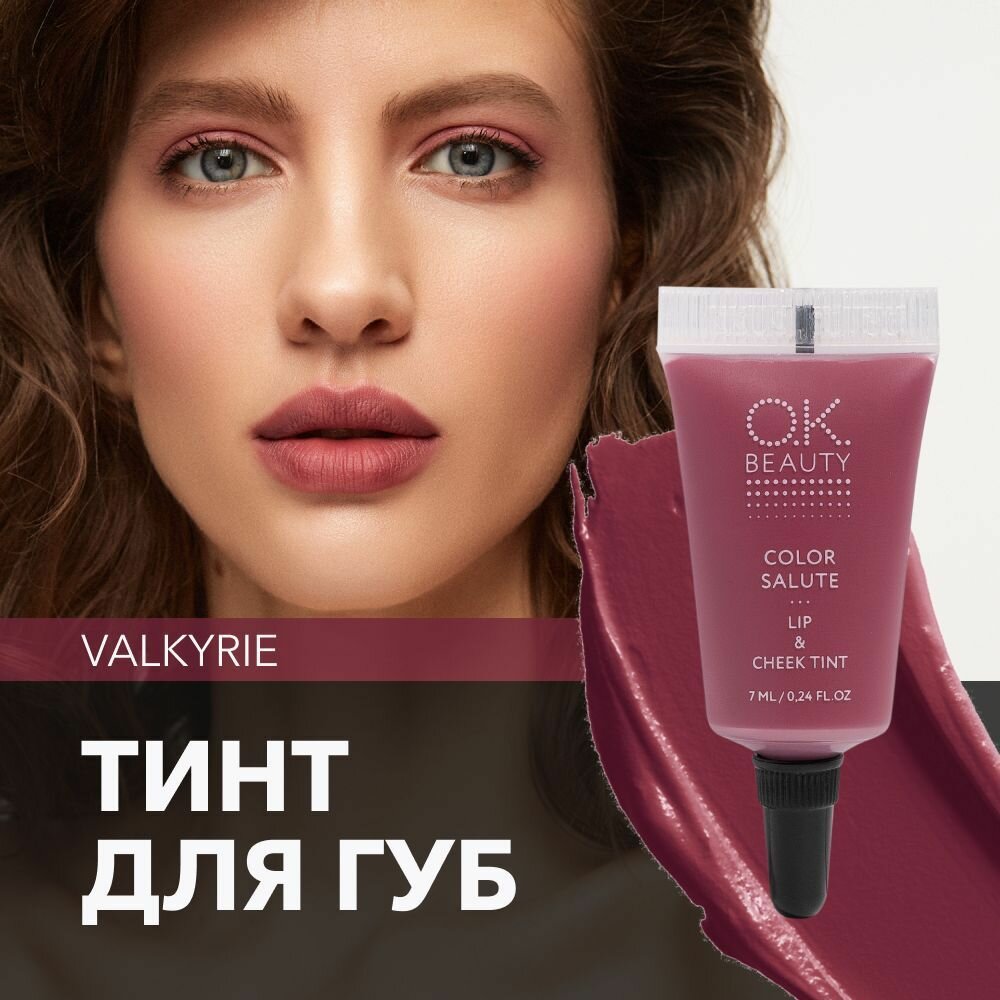 OK Beauty тинт для губ (помада) и щёк + румяна для лица кремовые + тени для век. Жидкий пигмент тон Valkyrie