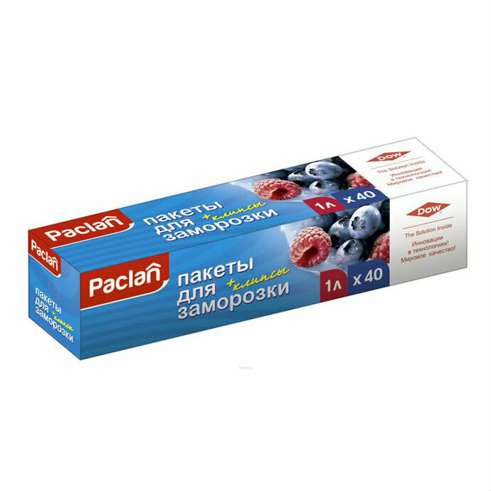 Купить Paclan Пакеты для заморозки с клипсами 18*28 см 1 л 40 шт