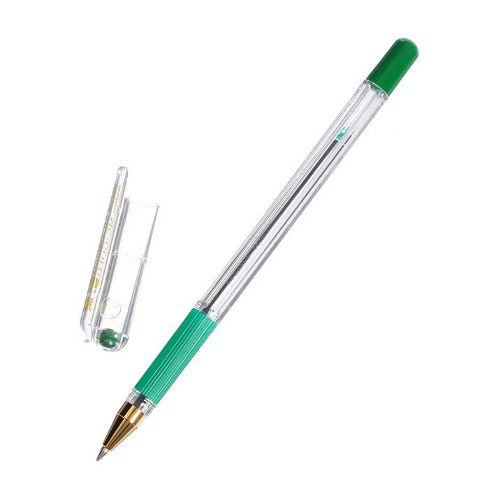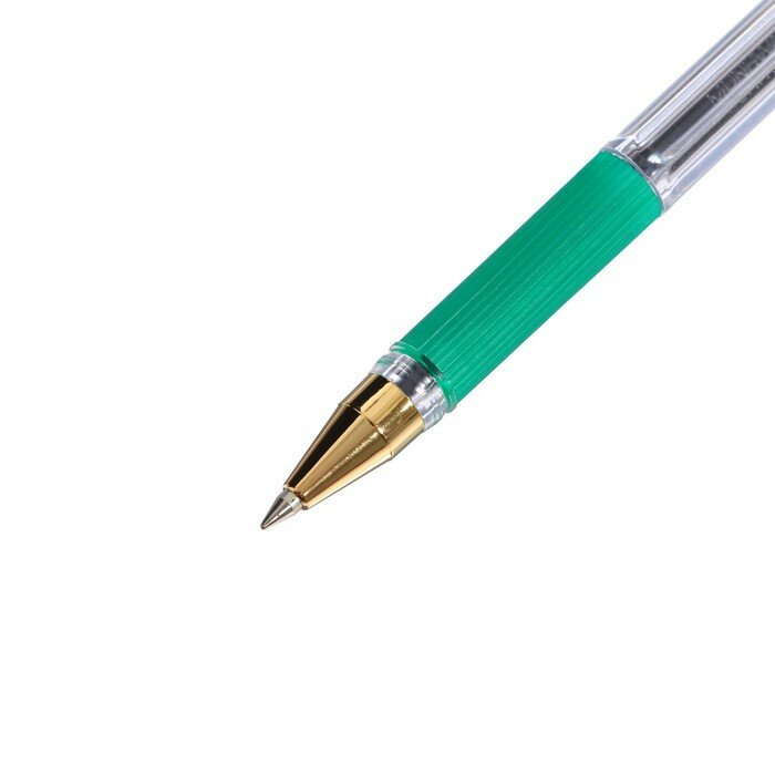 Ручка шариковая масляная с грипом MUNHWA "MC Gold", зеленая, корпус прозрачный, узел 0,5 мм, линия письма 0,3 мм, BMC-04