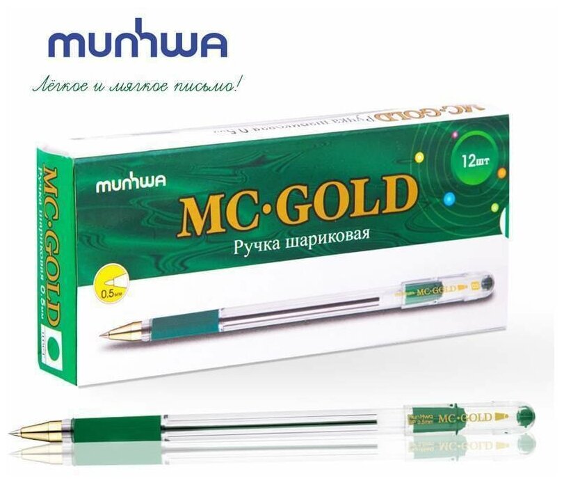 Ручка шариковая MunHwa MC Gold, стержень зеленый, узел 0.5 мм, грип