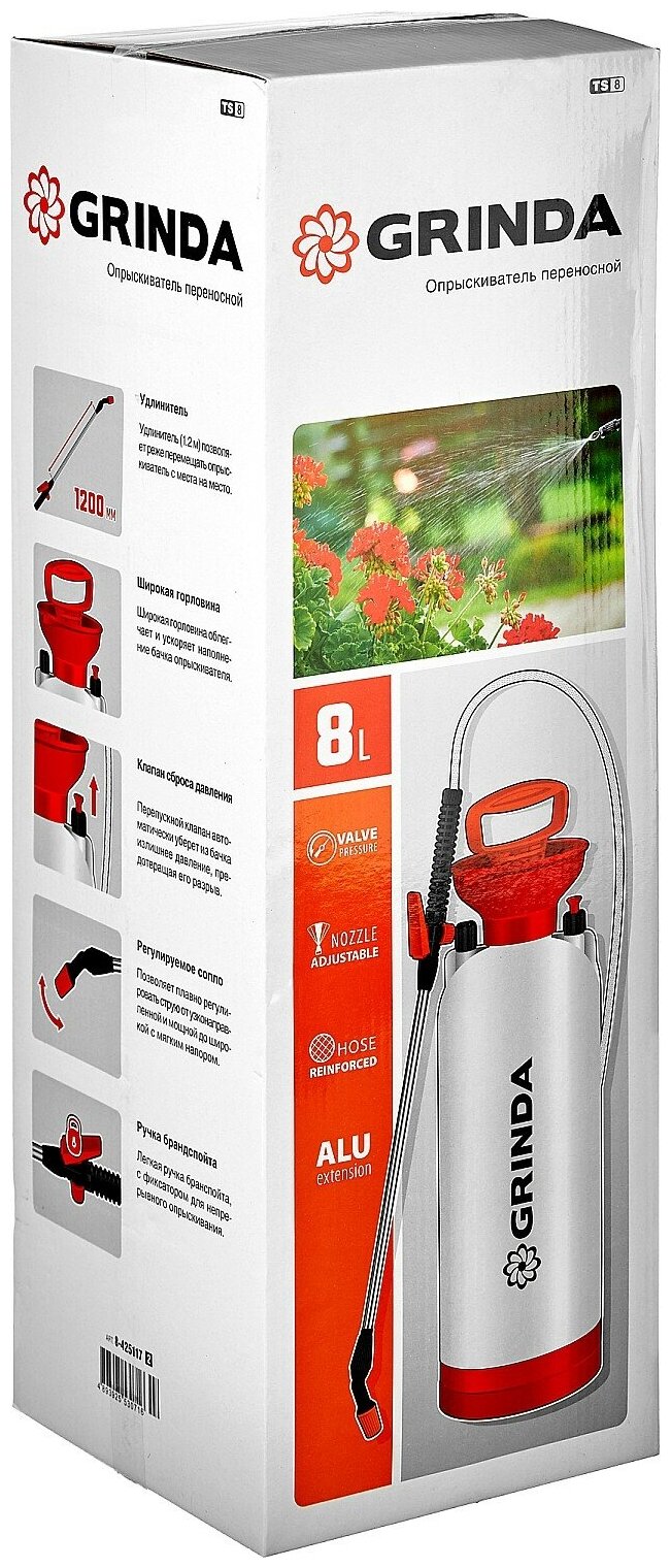 Ниже Вы можете прочитать отзывы на Переносной опрыскиватель GRINDA TS-8 8 л, с широкой горловиной и устойчивым днищем 8-425117, ознакомится с подробными характеристиками, посмотреть интересные обзоры и фотографии на Переносной опрыскиватель GRINDA TS-8 8 л, с широкой горловиной и устойчивым днищем 8-425117.