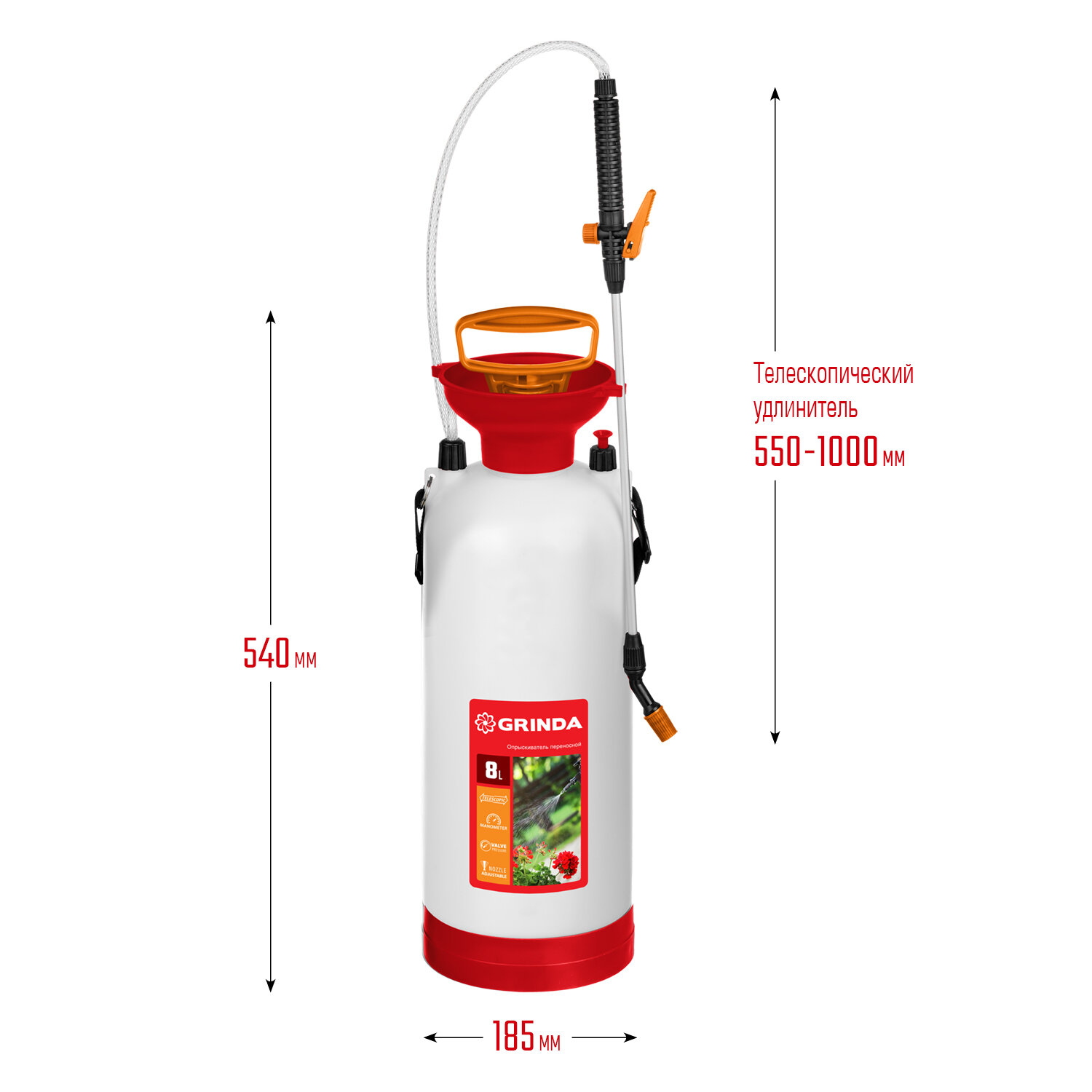 Опрыскиватель GRINDA TS-8, 8 л, с широкой горловиной