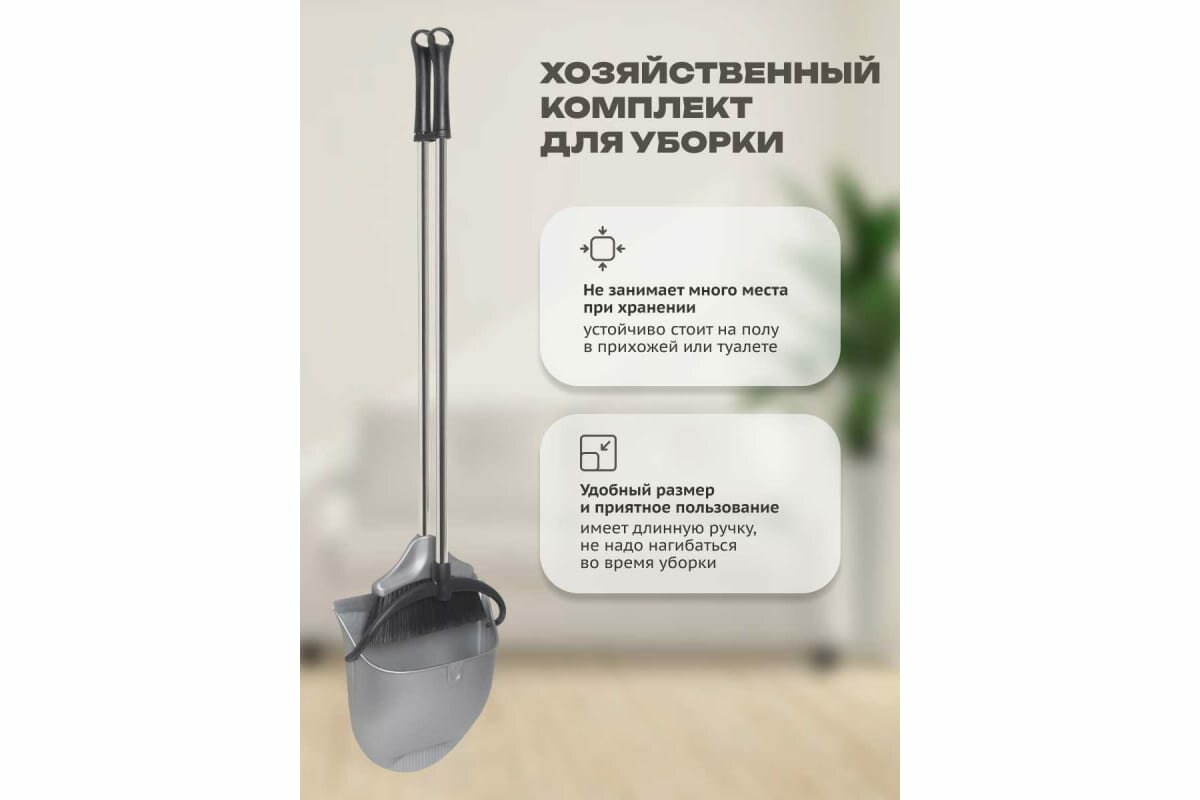 | Минусы: | Довольно хлипкая конструкция. Ручка у совка болтается, подметать не удобно, ручка у метелки не удобная |