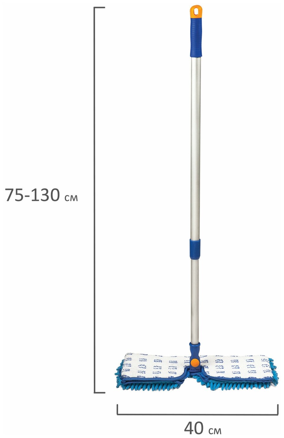 Швабра лайма лайма, 601465 двусторонняя 40 см, телескопический черенок 130 см (алюминий), резьба 1,6 см, микрофибра,