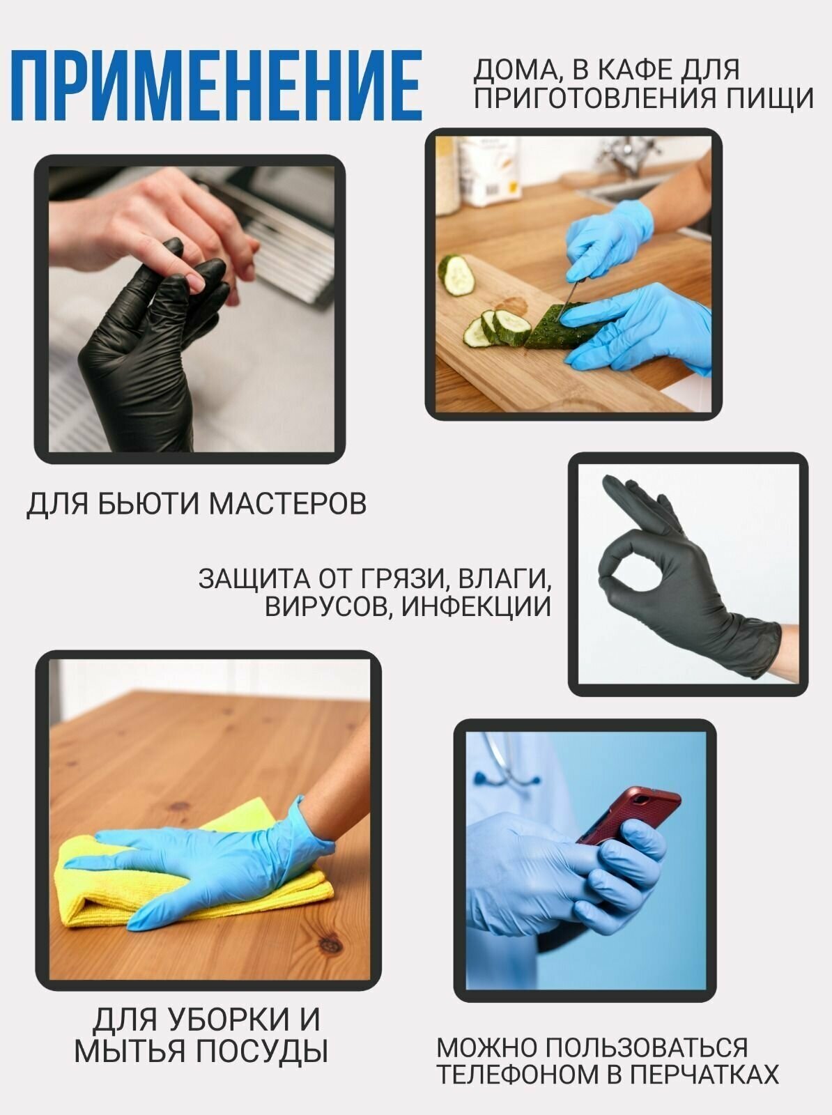 BENOVY Перчатки нитриловые одноразовые, медицинские, хозяйственные, косметологические, кулинарные, цвет голубой, размер S, упаковка 50пар, 100 шт