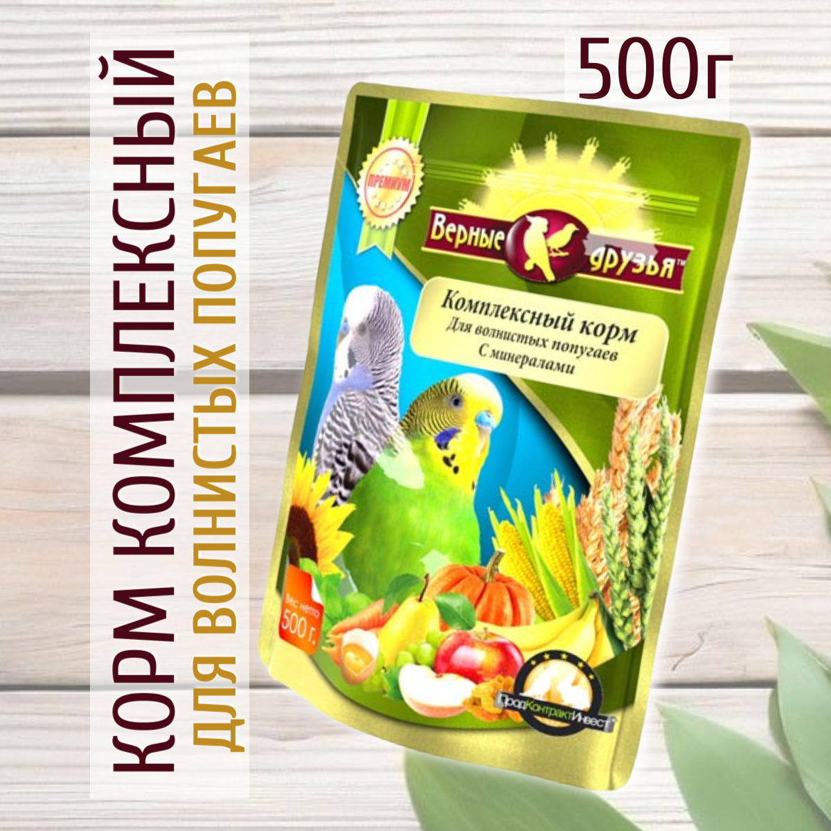 Верные друзья Комплексный корм с минералами для волнистых попугаев, 500 г