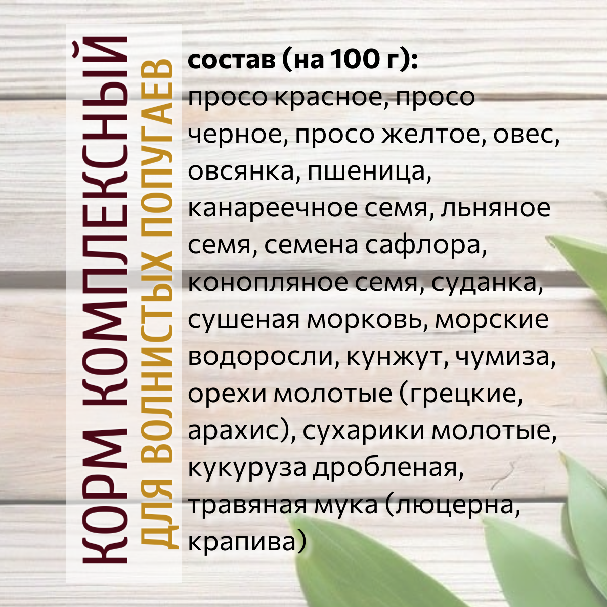 | Плюсы: | Хороший корм, попугай ест с удовольствием |