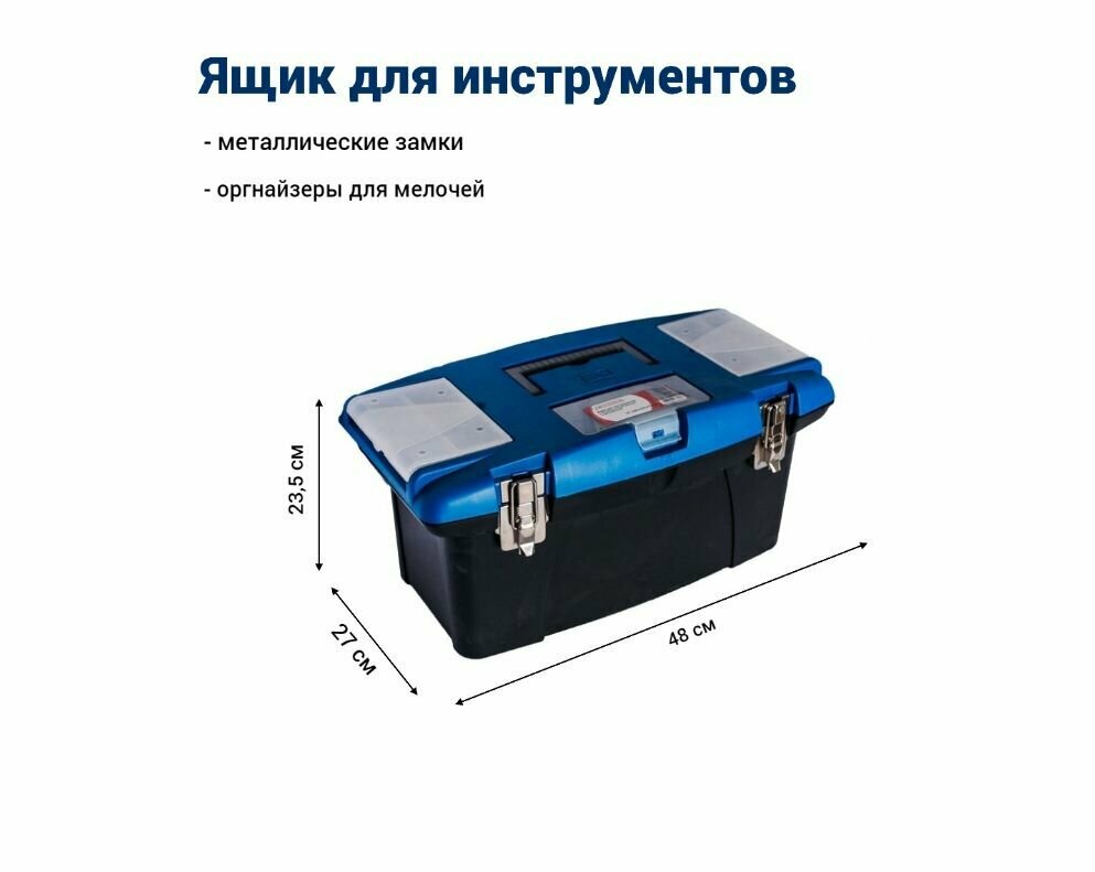 Ящик для инструментов с металлическими замками и органайзером Jettools 19" 480х235х270мм JT1602314 интересное: