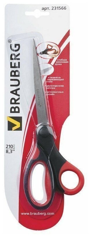 Ножницы Brauberg Energy 210мм, асимметричные ручки, остроконечные, прорезиненные ручки, красно-черные (231566) интересное: