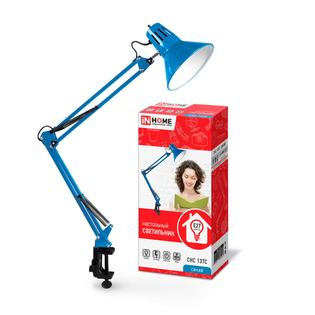 Купить Настольная лампа для школьника под лампу на струбцине СНС 13ТС 60Вт E27 230В синий IN HOME