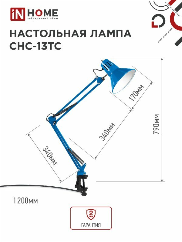 Светильник наст. п/лампу СНС 13ТС на струбцине 60Вт E27 230В синий (коробка) IN HOME .4690612035932