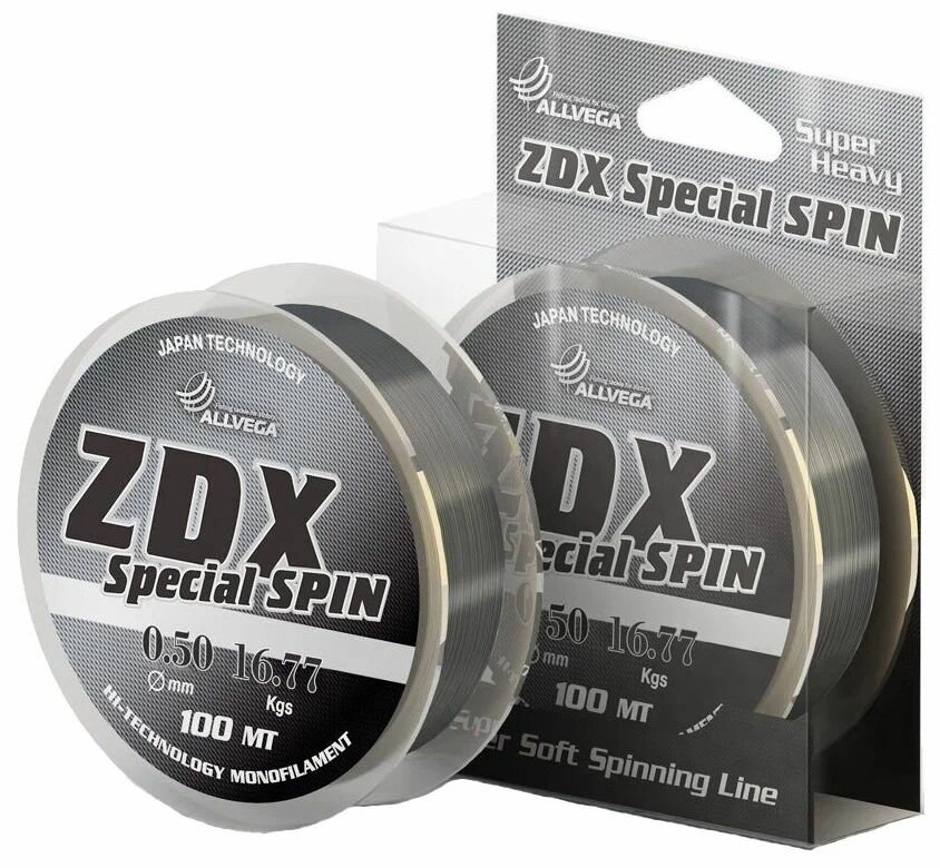 Монофильная леска ALLVEGA ZDX Special Spin d=0.5 мм, 100 м, 16.77 кг, светло-серая, 1 шт.