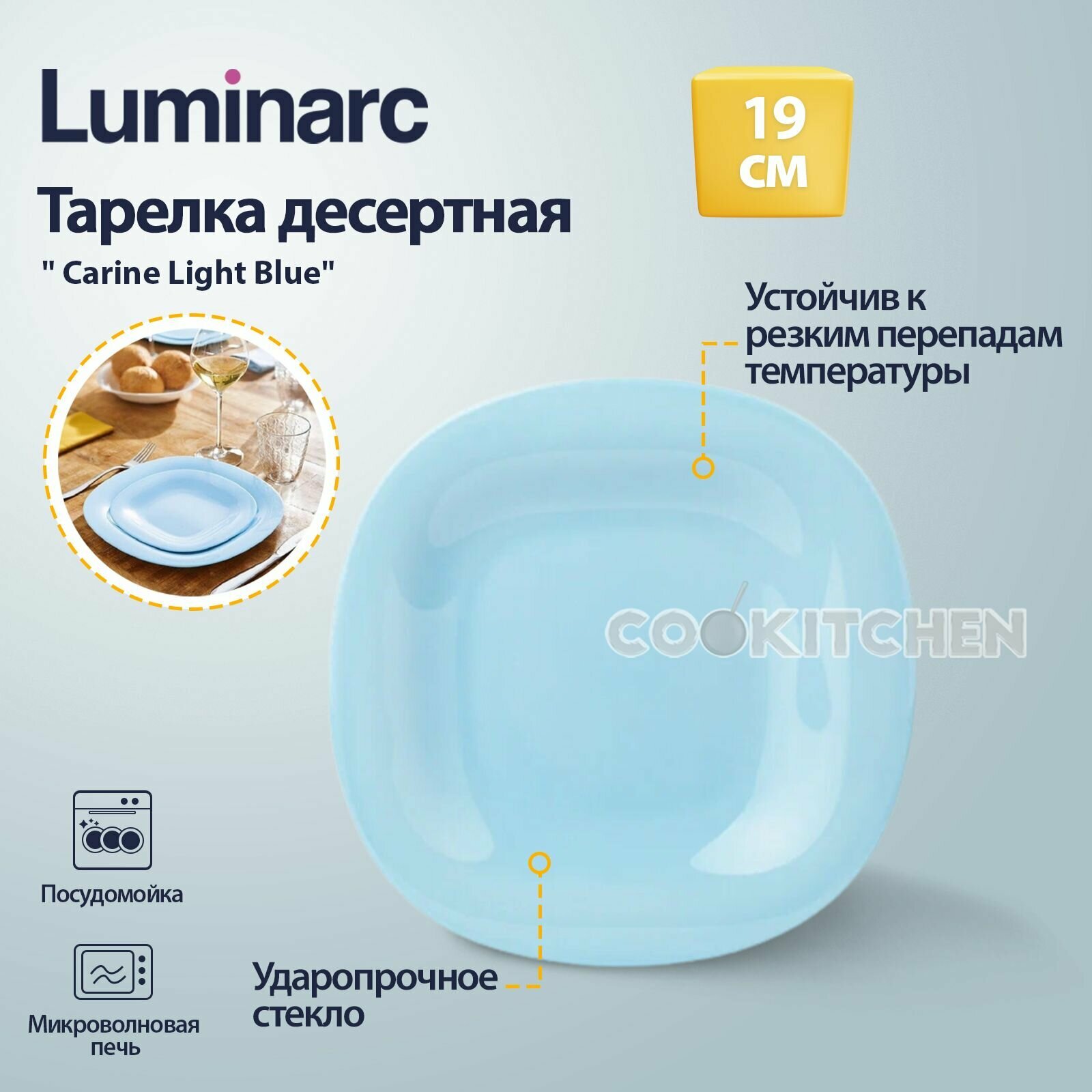 Тарелка десертная, стеклокерамика, 19 см, квадратная, Carine Light Blue, Luminarc, P4245