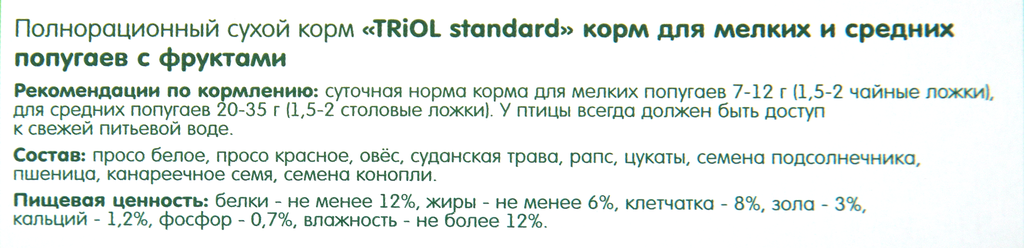 Triol Корм Standard для для мелких и средних попугаев с фруктами, 500 гр