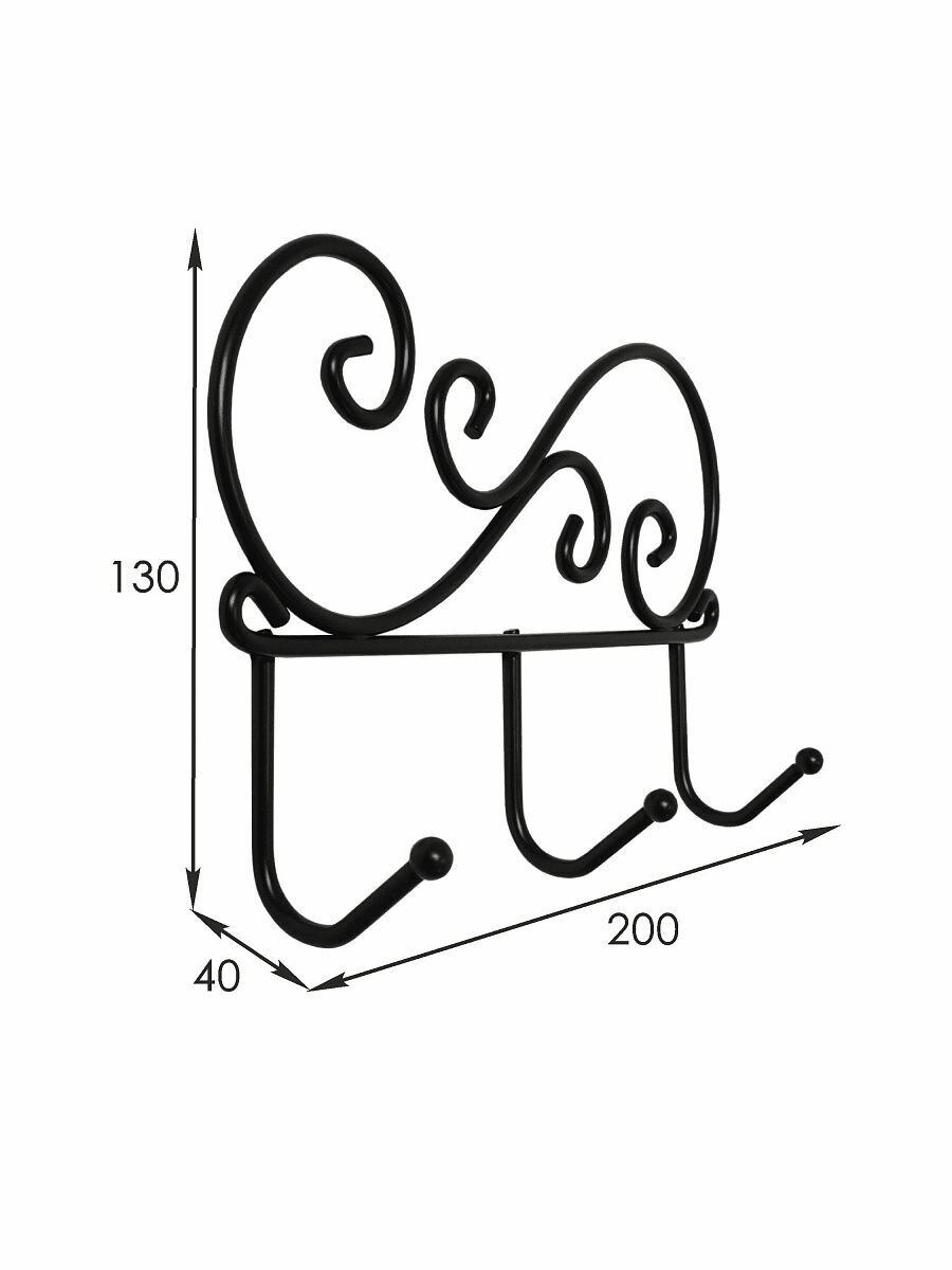Вешалка настенная ЗМИ Кружева 3, 3 крючка, 20 x 4 x 13 см, черная