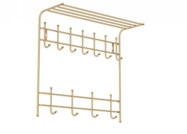 Вешалка с полкой настенная металлическая на 11 крючков ВПТ11 золотой