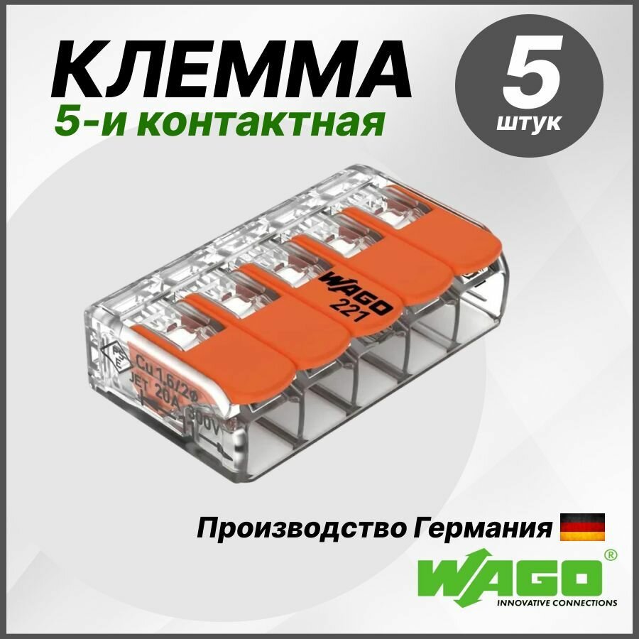 Клемма WAGO Оригинал 5-проводная 221-415 25 шт.