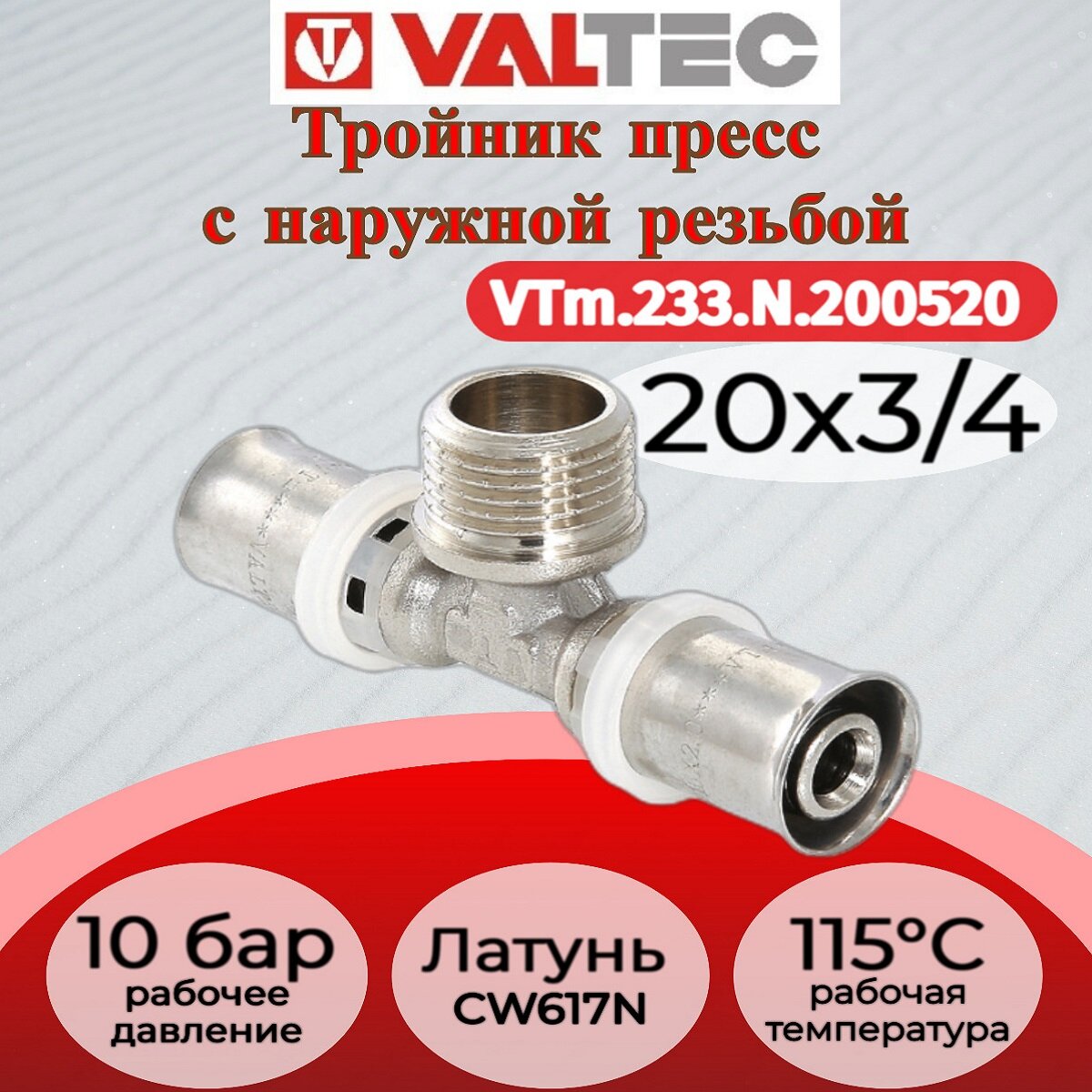 Купить Тройник VALTEC VTm.233.N.200520 20x3/4"x20 пресс – резьба 1 шт.