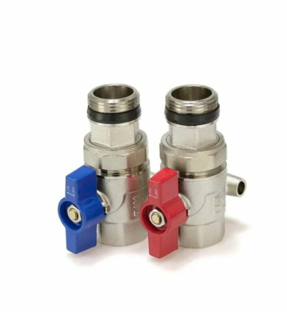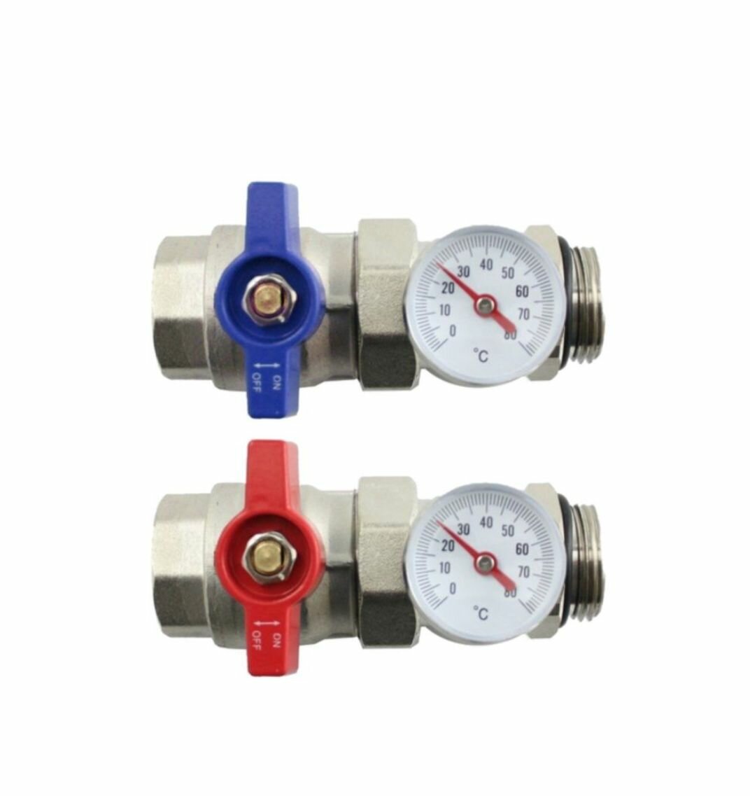 Шаровый кран 1"х1" с термометром (пара: красная + синяя бабочка), TIM M308-4T