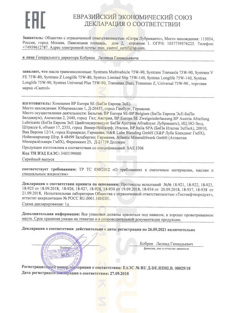 | Минусы: | К сожалению, продавец Авангард МПО отправил не то масло. Заказал Castrol Syntrans Transaxle 75W-90, а пришло Castrol Transmax Manual Transaxle 75W-90, спасибо Яндекс за компенсацию. |