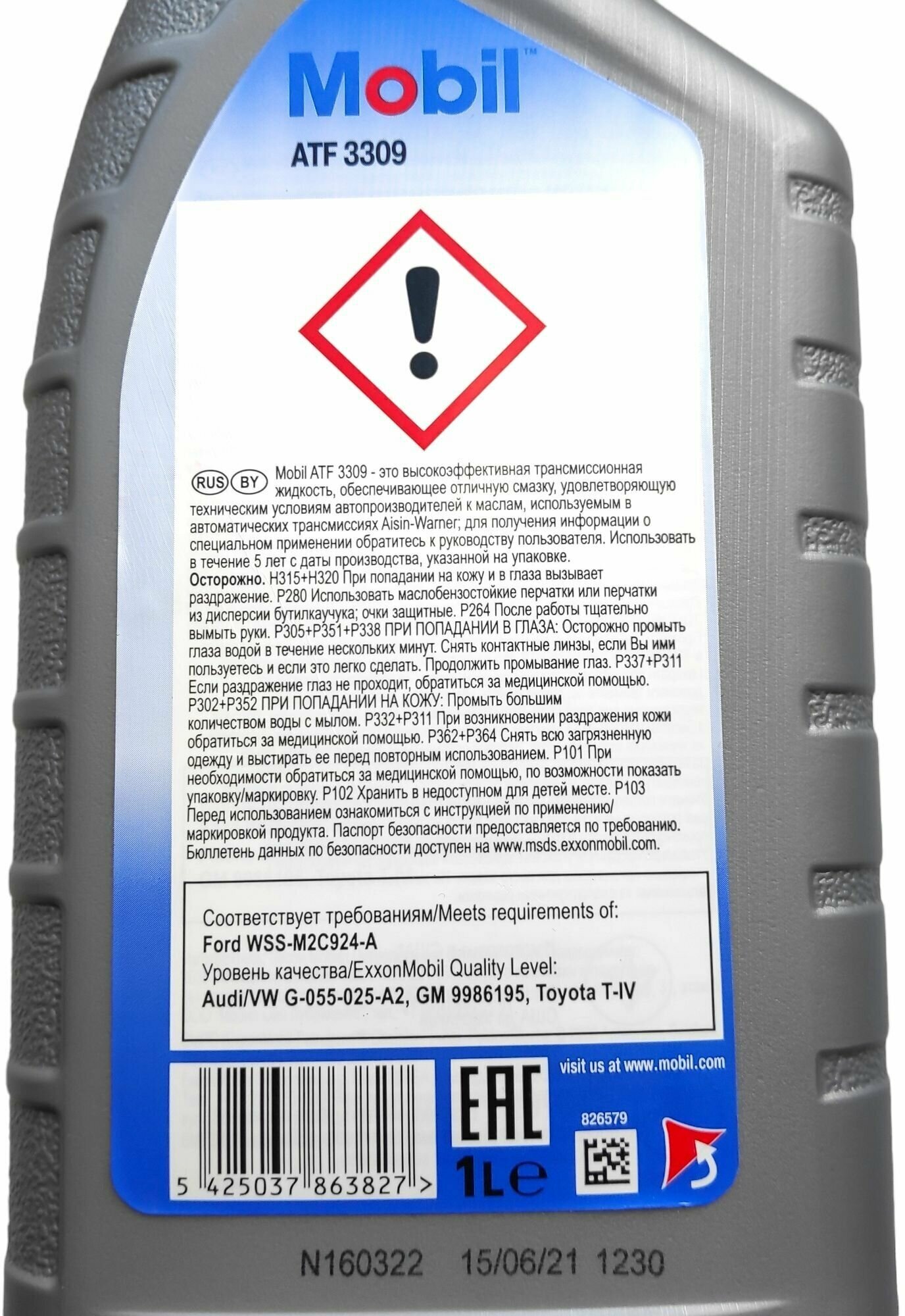 Масло трансмиссионное Mobil ATF 3309 минеральное, для АКПП, 1л, арт. 3309
