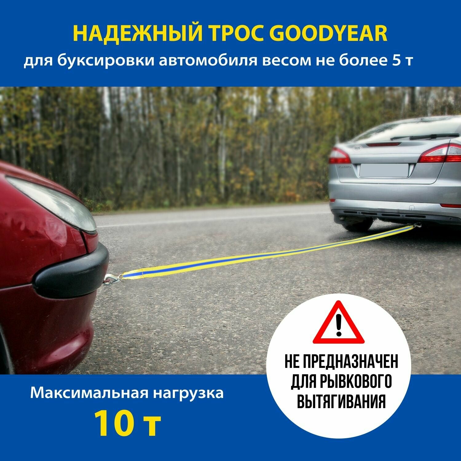 Трос Буксировочный Goodyear 3,5 Тонны, 5 Метров, 2 Стальных Крюка, Водостойкий, Сумка В Комплекте Россия GOODYEAR арт. GY004000