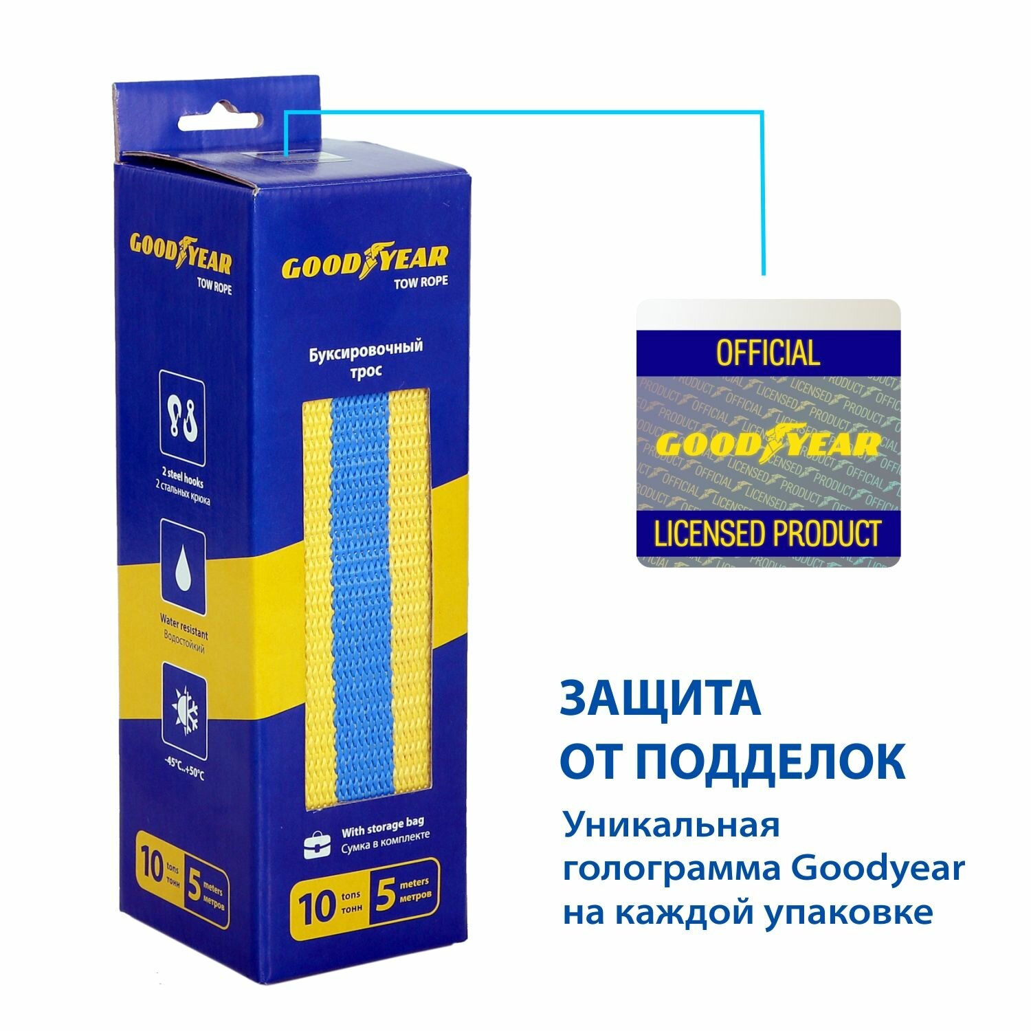 Трос Буксировочный Goodyear 5 Тонн, 5 Метров, 2 Стальных Крюка, Водостойкий, Сумка В Комплекте Россия GOODYEAR арт. GY004001