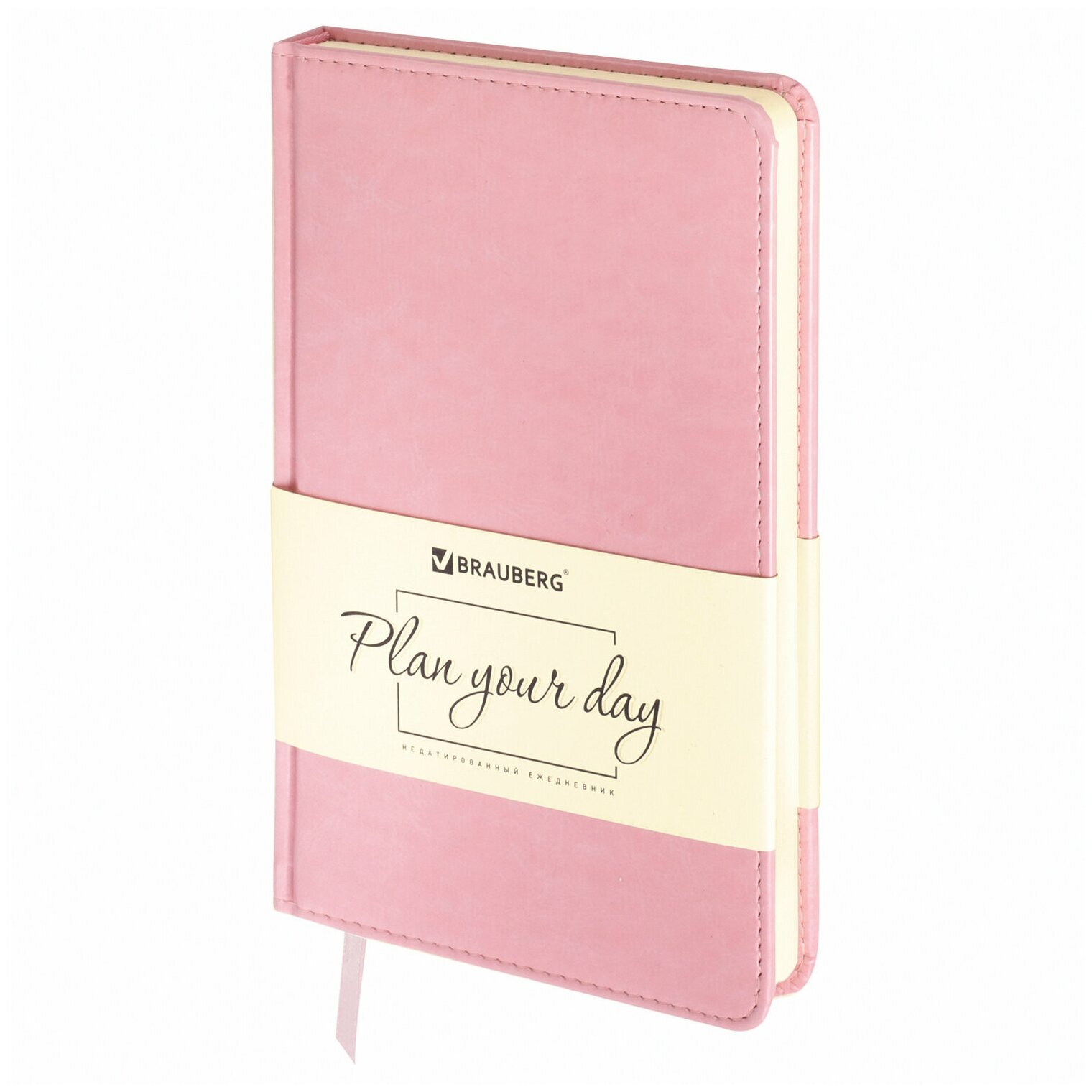 Ежедневник недатированный Brauberg А5, Imperial, 160 листов, кожзам, розовый (111859)