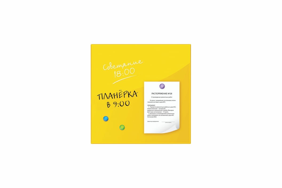Доска магнитно-маркерная стеклянная 45х45 см 3 магнита желтая Brauberg 236739 (1)