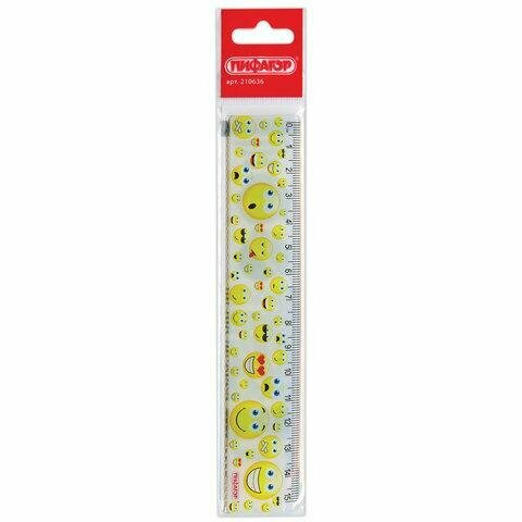 СохранитьЛинейка пластиковая 15 см, пифагор "Смайлики", цветная печать, с волнистым краем, европодвес, 210636 (цена за 1 ед.товара) интересное: