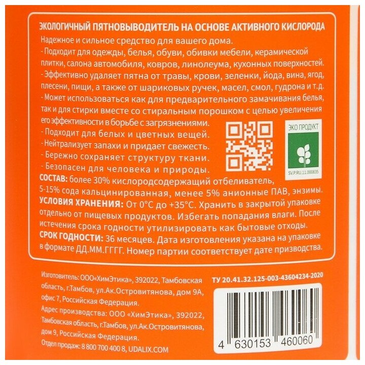 Экологичный пятновыводитель на основе активного кислорода Udalix Oxy Ultra