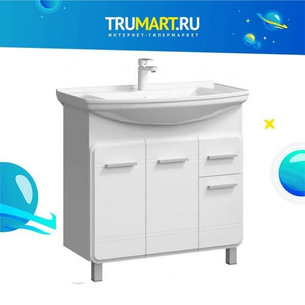 Тумба с раковиной для ванной Кристалл 50 белая.