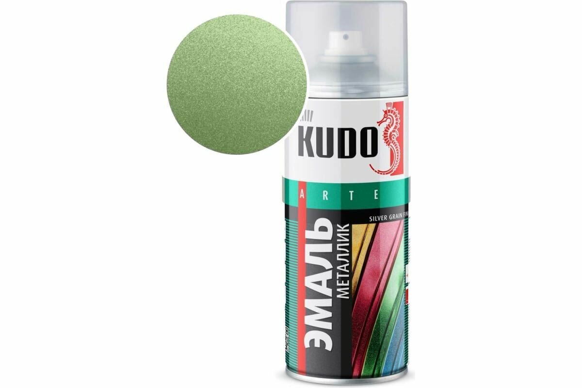 Эмаль KUDO универсальная металлик Silver grain finish, зеленая олива, глянцевая, 520 мл, 1 шт.