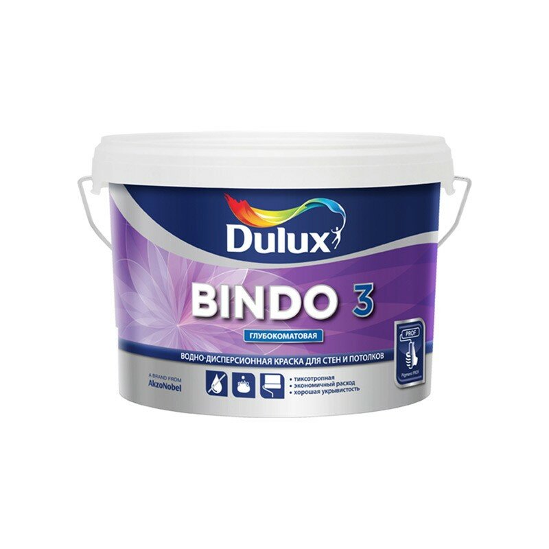 Dulux Professional Bindo 3 Водно-дисперсионная краска для стен и потолков (под колеровку, глубокоматовая, база BC, 9 л)