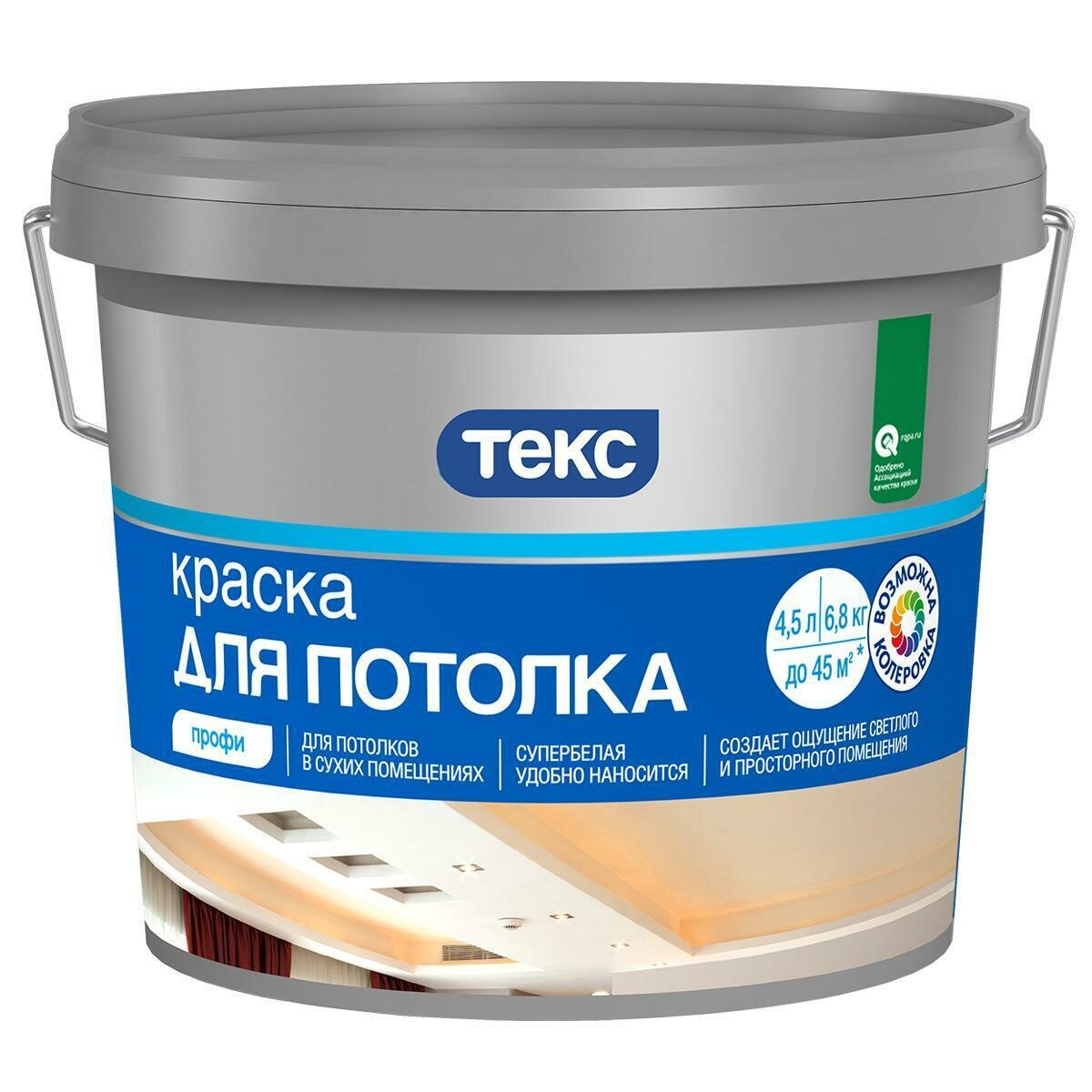 Текс Для потолков краска в/д (4,5л) профи / текс Для потолка краска в сухих помещениях (4,5л) класс профи