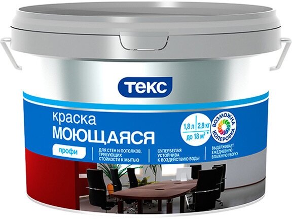 Текс Моющаяся база A белая краска в/д (1,8л) профи / текс Моющаяся база A краска для стен и потолков в сухих и влажных помещениях (1,8л) класс профи