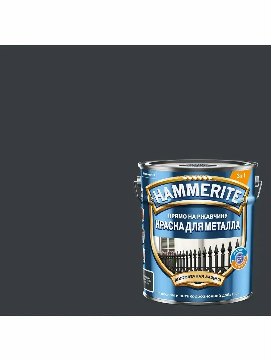 Краска для металла 3 в 1 прямо на ржавчину Hammerite гладкая глянцевая (2л) темно-серый RAL 7016