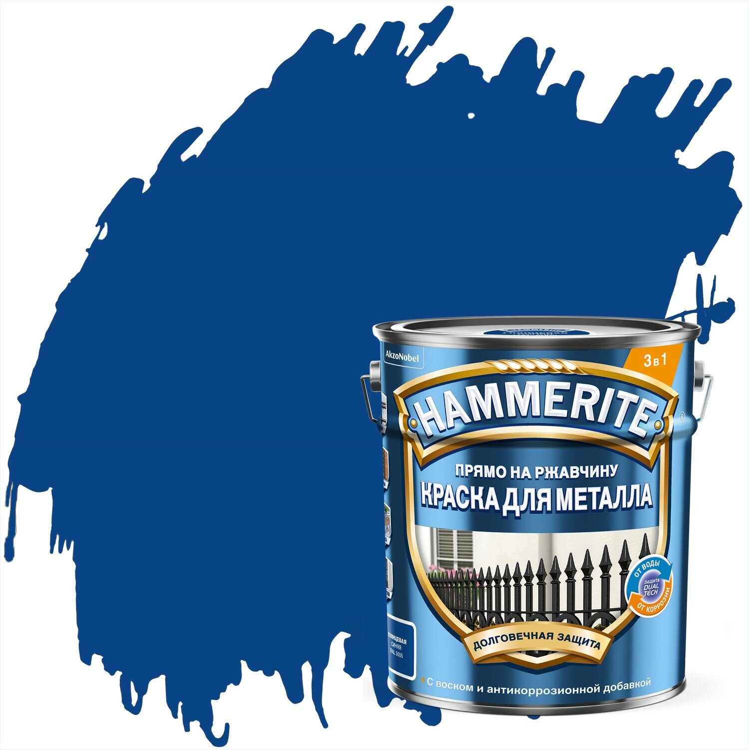 Краска для металла 3 в 1 прямо на ржавчину Hammerite гладкая глянцевая (2л) синий RAL 5005