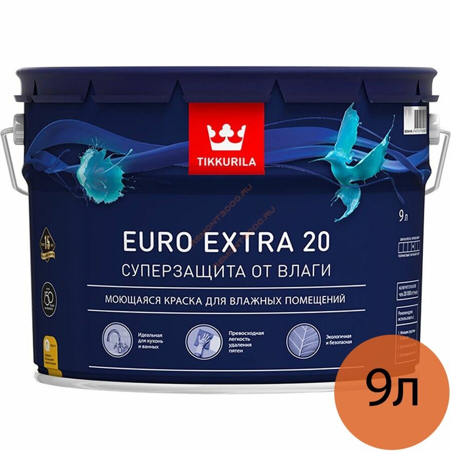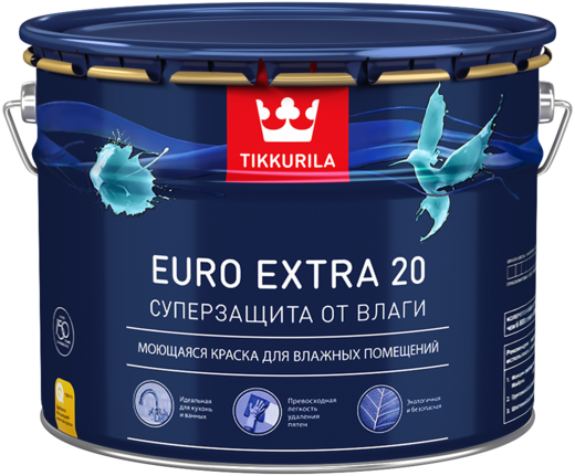 Краска TIKKURILA EURO EXTRA 20 моющаяся для влажных помещений, полуматовая база С 9л бесцветная