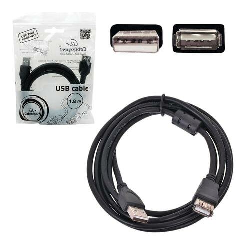 Кабель удлинитель USB 2.0 Pro, AM/AF, экран, ферритовое кольцо, 1,8 м, черный, Cablexpert