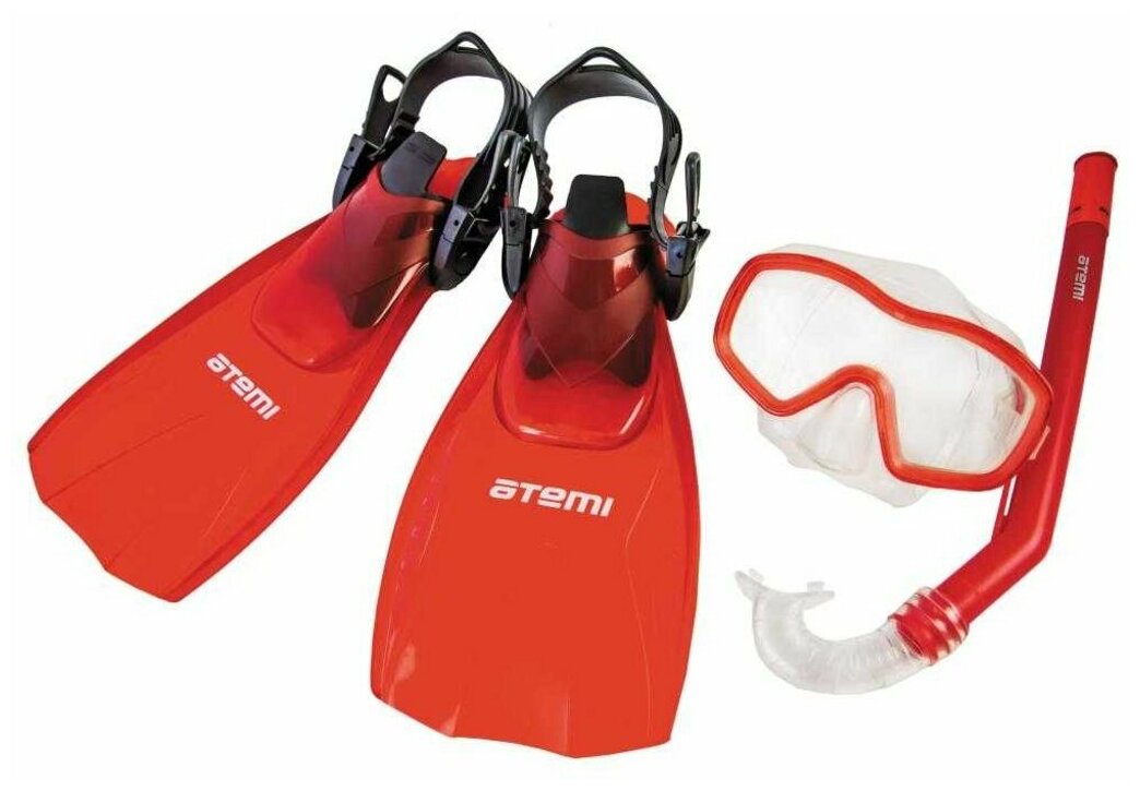 Купить Набор для плавания Atemi (маска+трубка+ласты) размер 28-31, красный