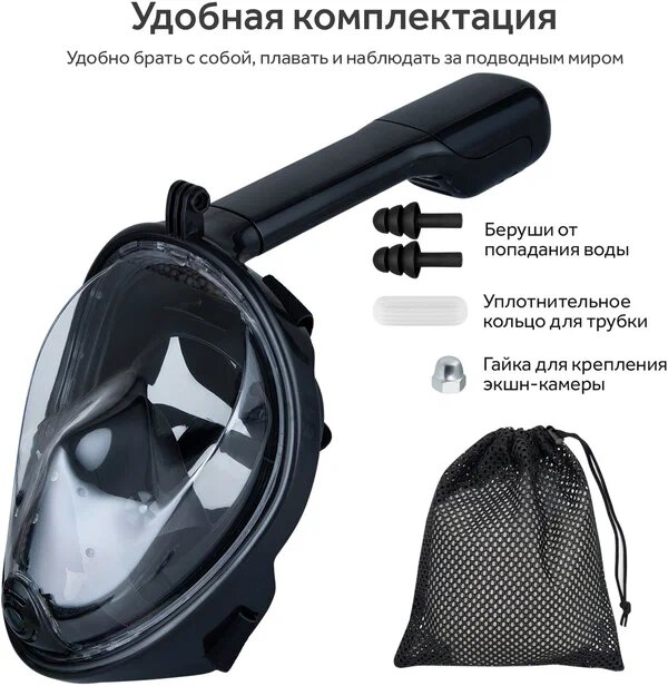 Маска для снорклинга SF 0371, крепление к гоупро, черная S/M