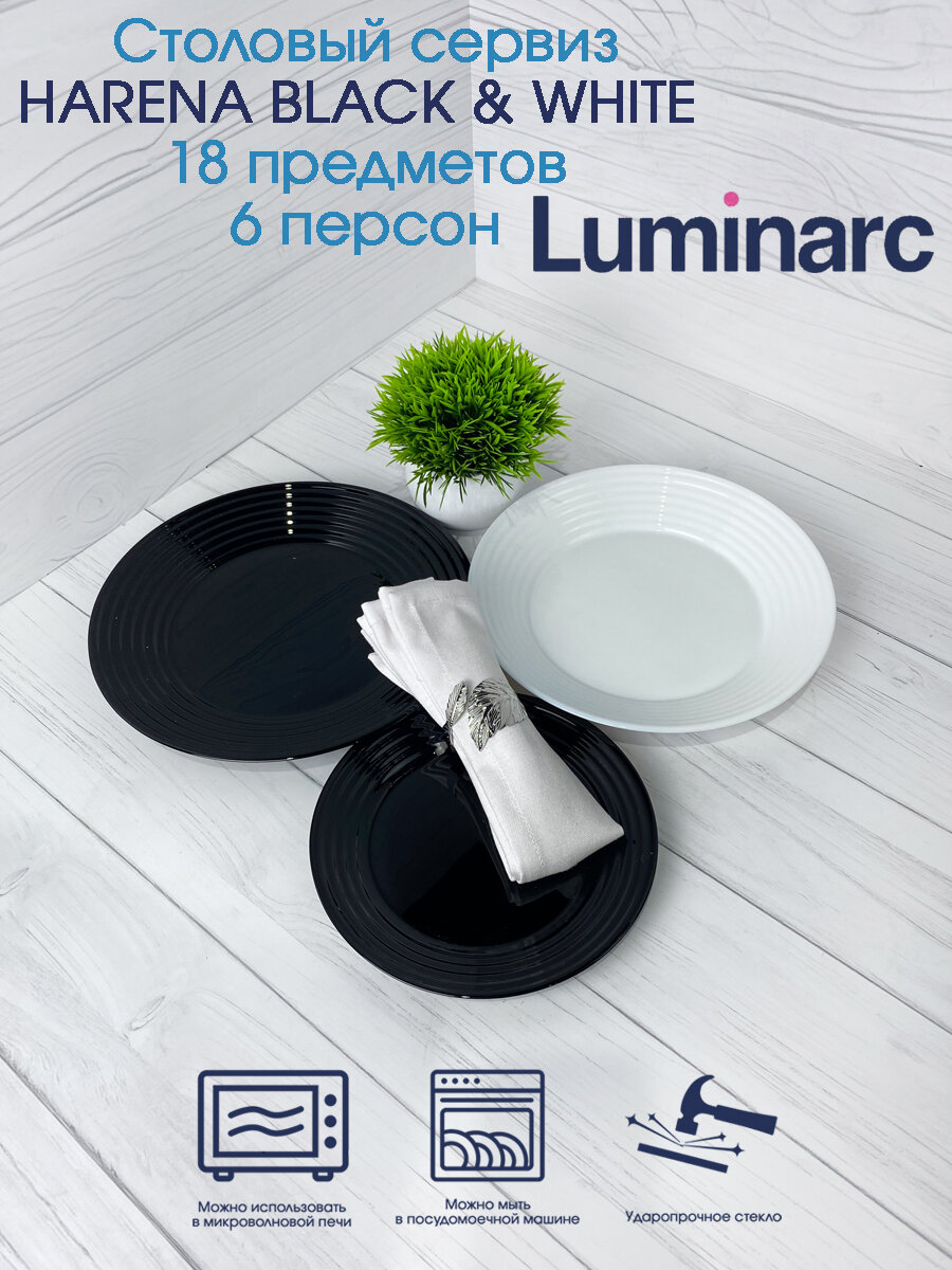 Купить Сервиз столовый Luminarc HARENA BLACK & WHITE, 18 предметов (N1518)