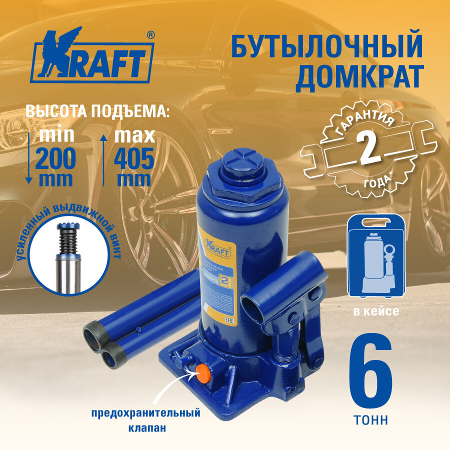Домкрат Бутылочный (6 Т) (200-405 Мм) "Kraft" (В Кейсе) Kraft арт. KT 800016