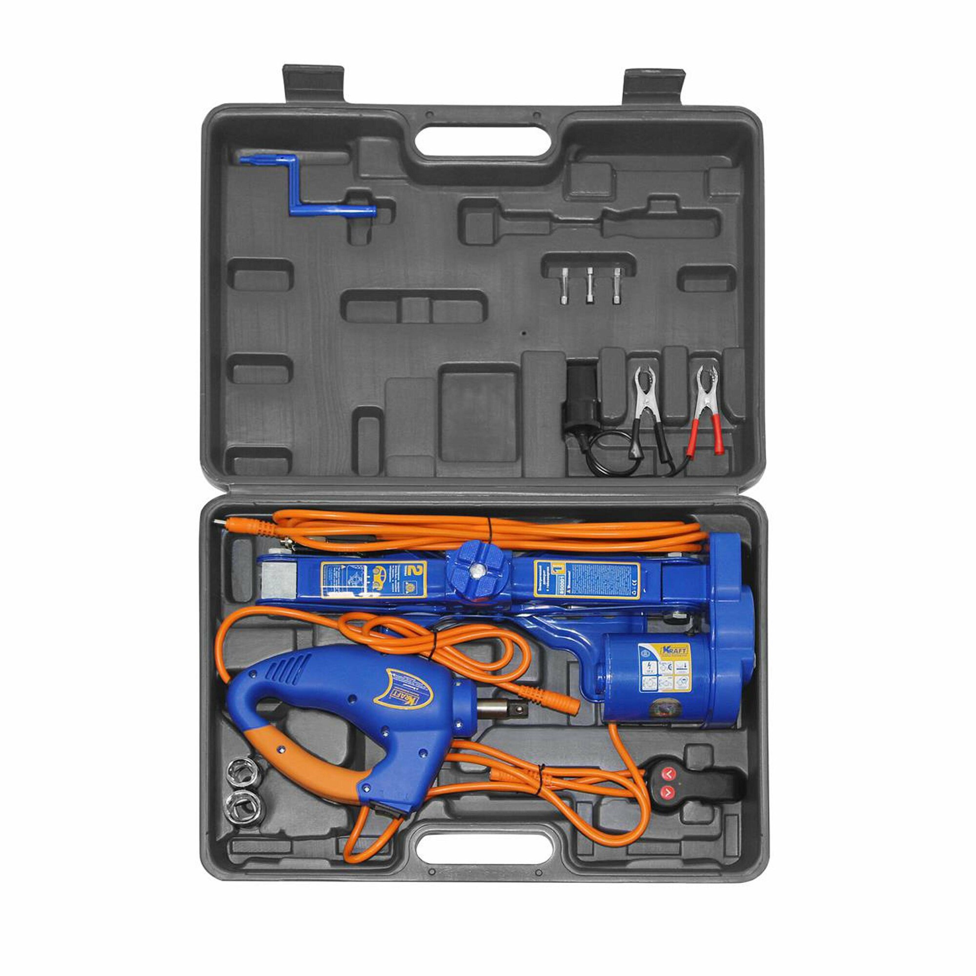 Электрический домкрат KRAFT 2 т, с гайковертом, в кейсе KT 850001