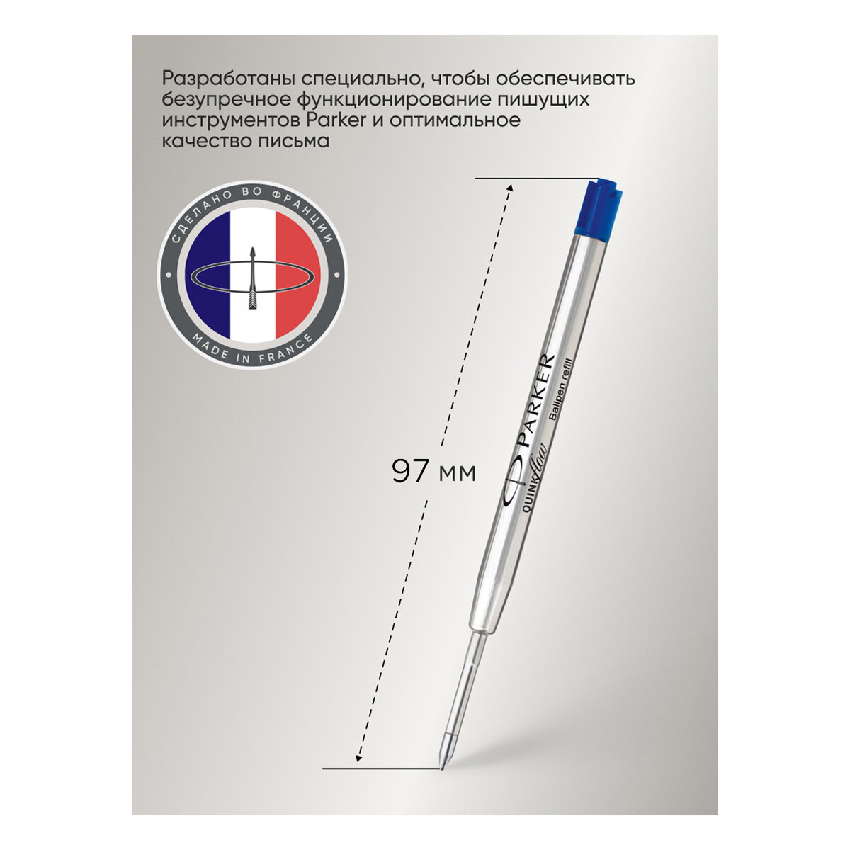 СохранитьСтержень шариковый PARKER "Quinkflow", металлический, 98 мм, узел 0,8 мм, блистер, синий, 1950368 интересное: